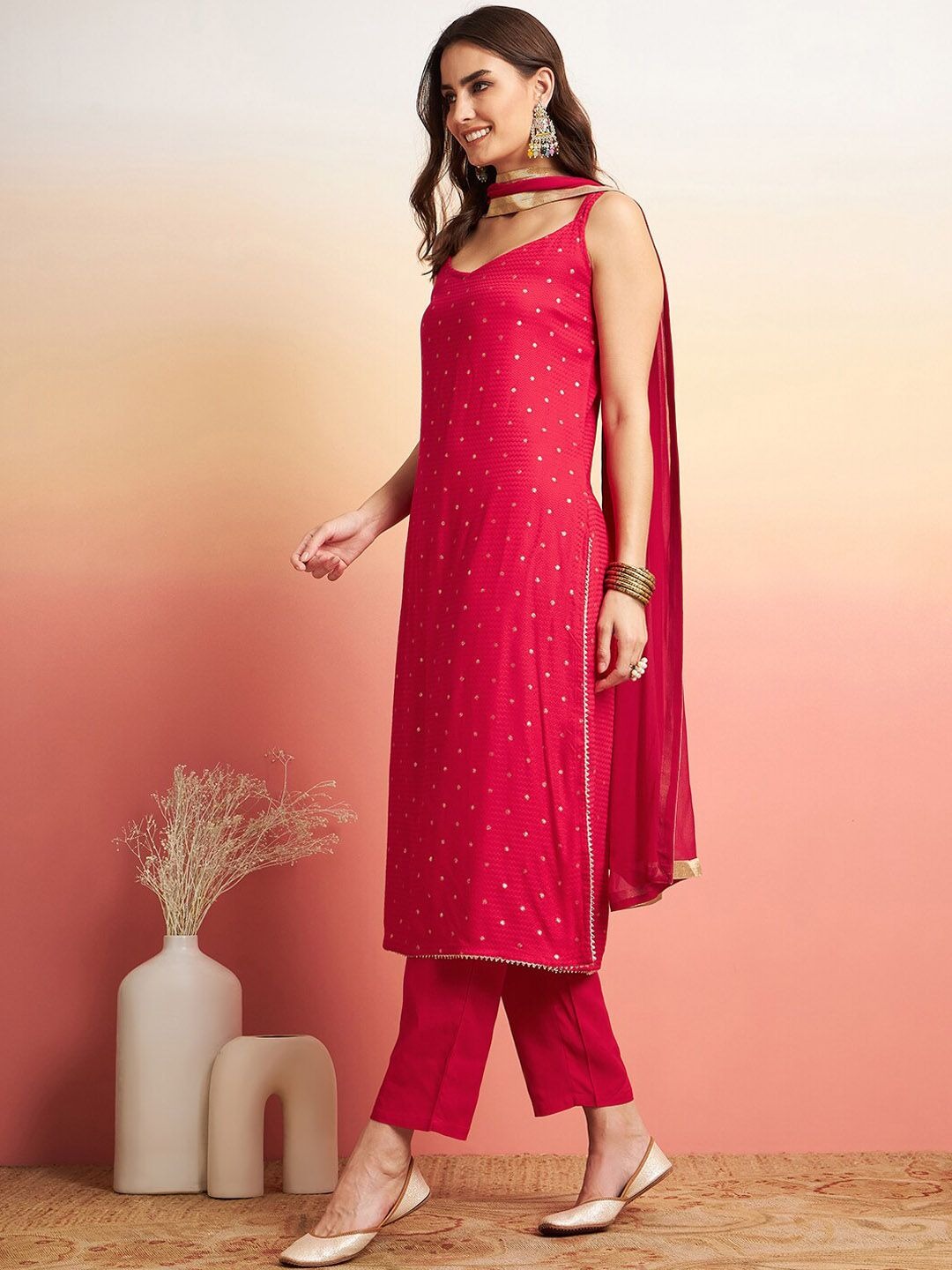 Sangria – Embroidered Shoulder Straps Straight Kurta With Trousers & Dupatta